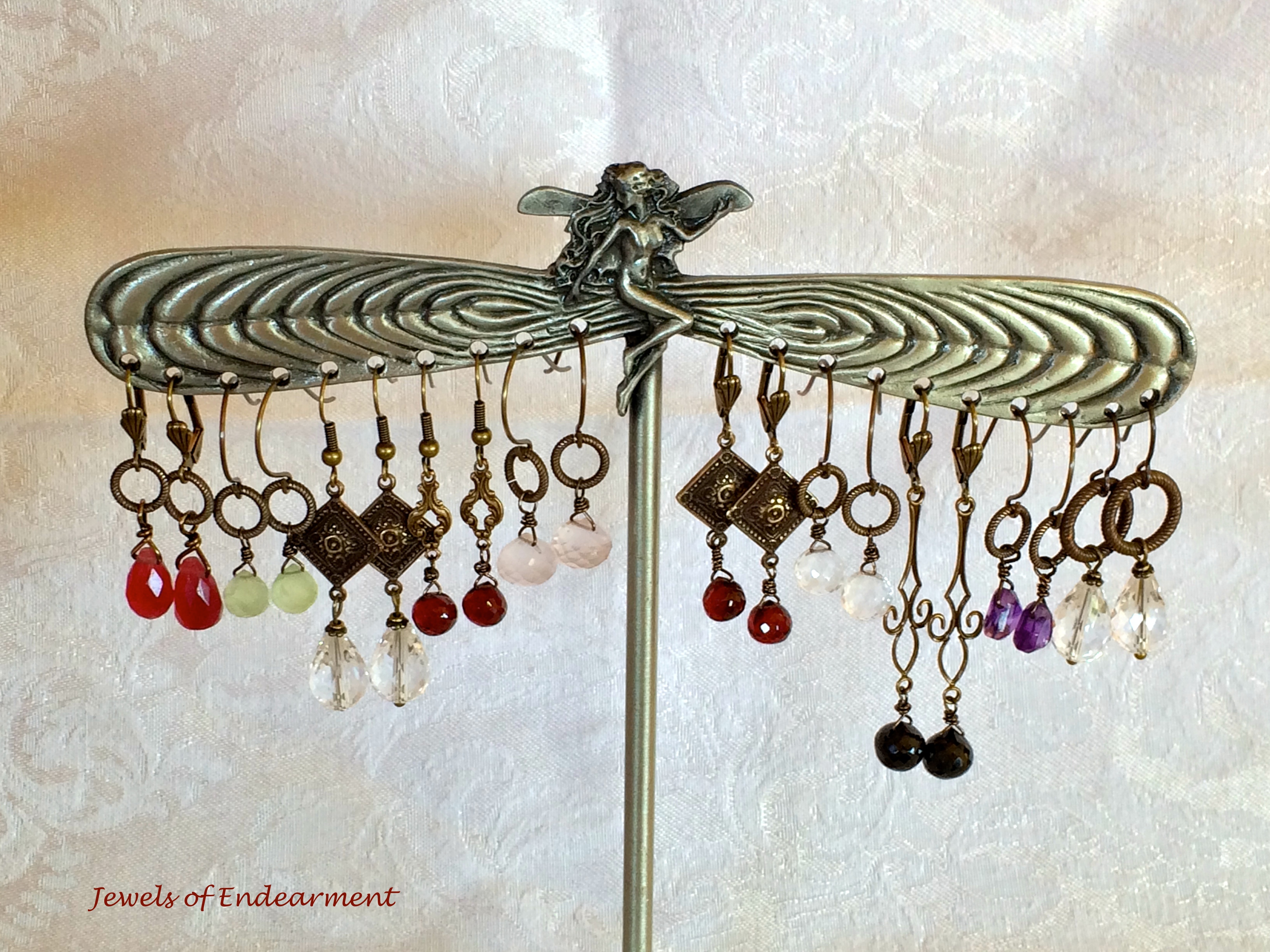 Chalcedony, appetite, faceted glass, garnet, pink quartz, garnet, imperial topaz, black topaz, amethyst, faceted glass all lined up to sparkle and dance around you!