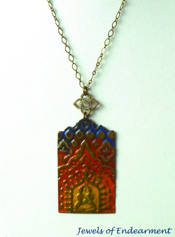 Doorway to the Sunrise Necklace A Moroccan doorway beckons in paints of yellow, oranges, reds and blues.